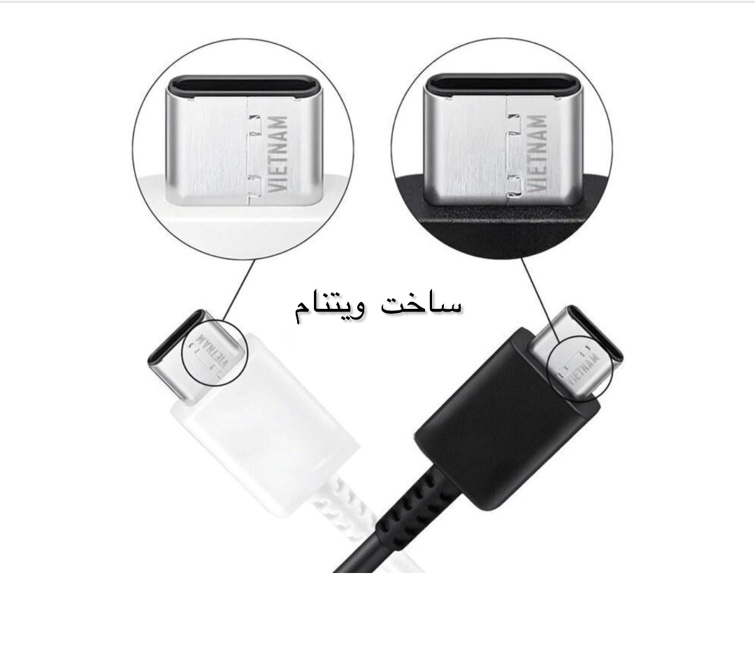 کابل سوپر فست شارژ دو سر تایپ سی اصلی یک متری سامسونگ Samsung 3A USB-C to USB-C Cable EPرنگ سفید سازگار باسایر گوشی، تبلت، کامپیوتر و مک بوک های دارای پورت تایپ-سی