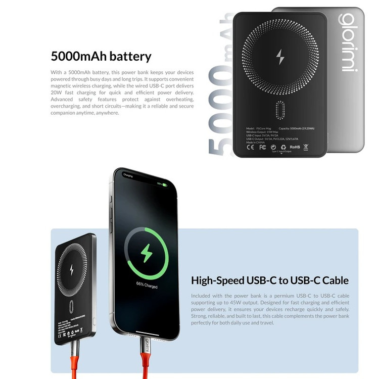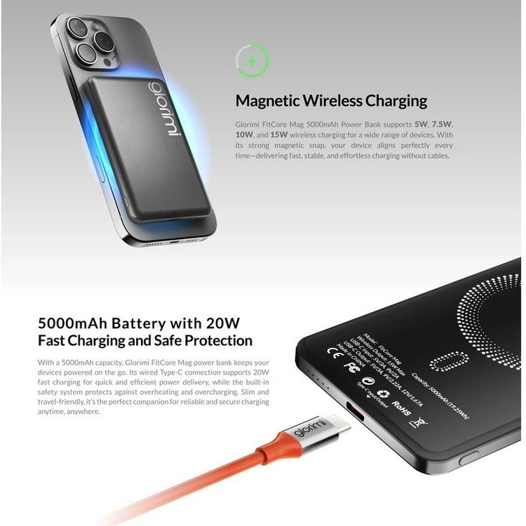 ⚡ مشخصات فنی Glorimi FitCore Mag 20W (5000mAh)