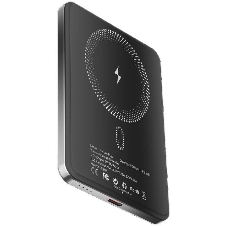 این پاوربانک از فناوری MagSafe بهره میبرد و بهصورت مغناطیسی به پشت آیفون یا دستگاههای سازگار متصل میشود. اتصال محکم، ظریف و دقیق آن باعث میشود گوشی در جای خود ثابت بماند و فرآیند شارژ بدون قطعی یا لغزش انجام شود.