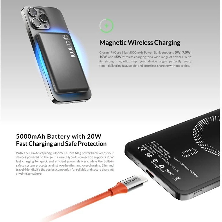 ⚡ مشخصات فنی Glorimi FitCore Mag 20W (5000mAh)