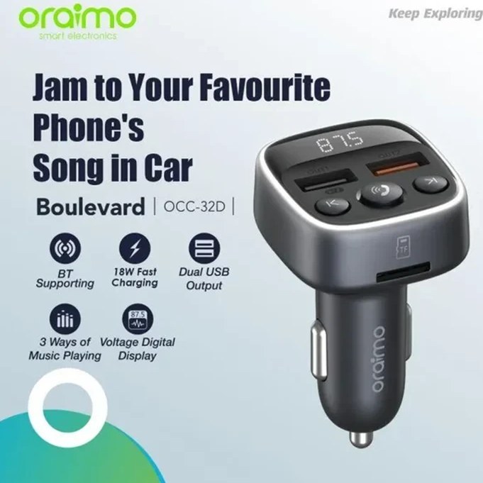 شارژر فندکی اورایمو Boulevard 18W با توان 18 وات، دو خروجی USB، پخش موزیک بیسیم، فرستنده رادیویی و پشتیبانی از کارت حافظه و فلش، یک ابزار همهکاره و هوشمند برای رانندگی روزمره و سفرهای طولانی است.