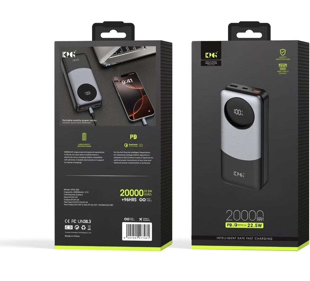 KPG brand 20,000 mAh power bank, model KPG-202